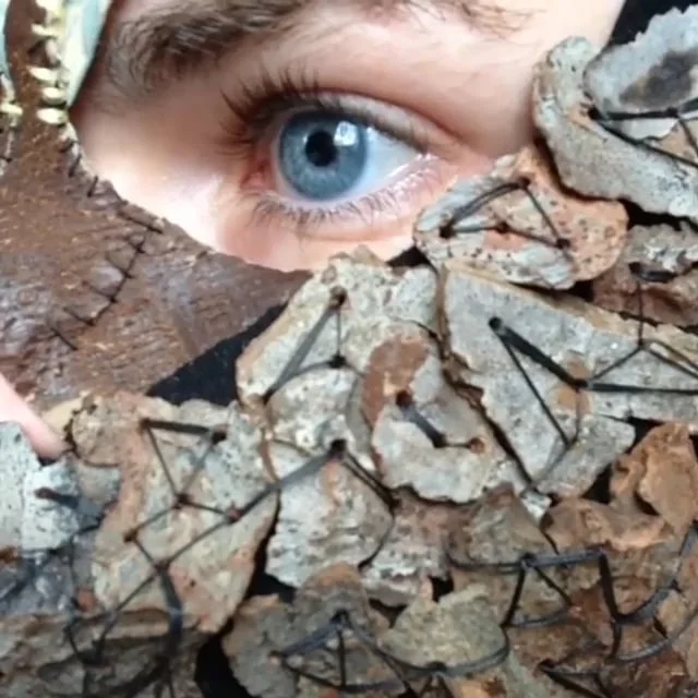 This headpiece and veil are for a performance about a gladiator or matador who has been sentenced to death. He enters an arena to fight a ferocious beast only to realize the beast is also him. The beast is another version of himself and a part of himself that needs to die for the rest of him to survive. The gladiator is devastated that he must destroy part of himself to survive. The performance is meant to be about the initial realization, the struggle with the self over what must be done to one part to preserve the whole, and the tender, somber last dance of the gladiator and his beast.