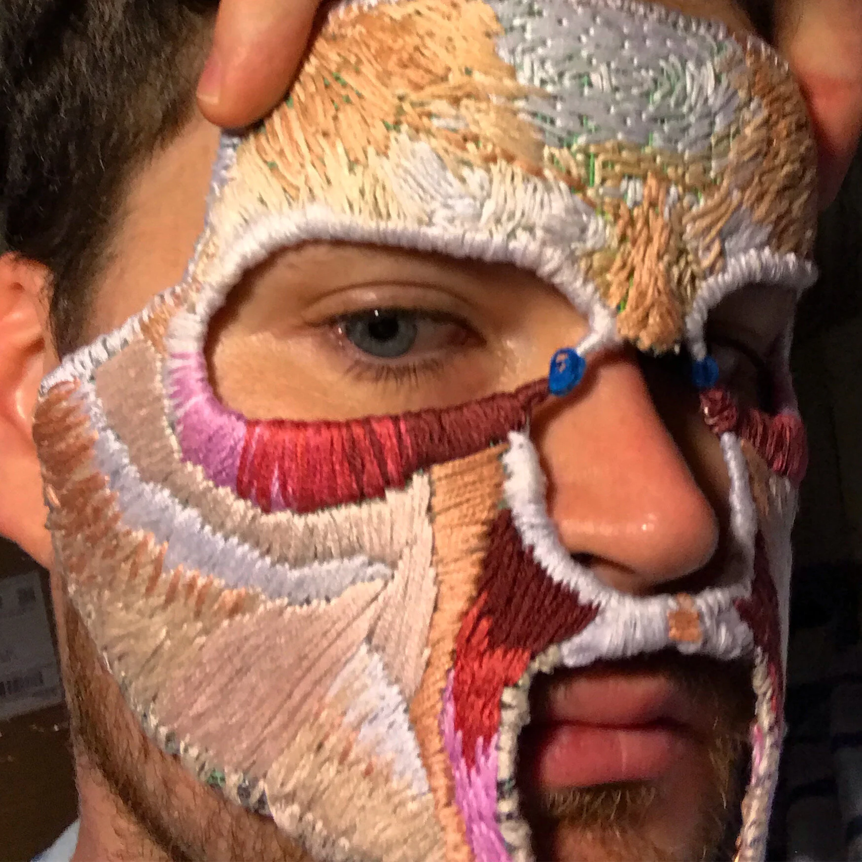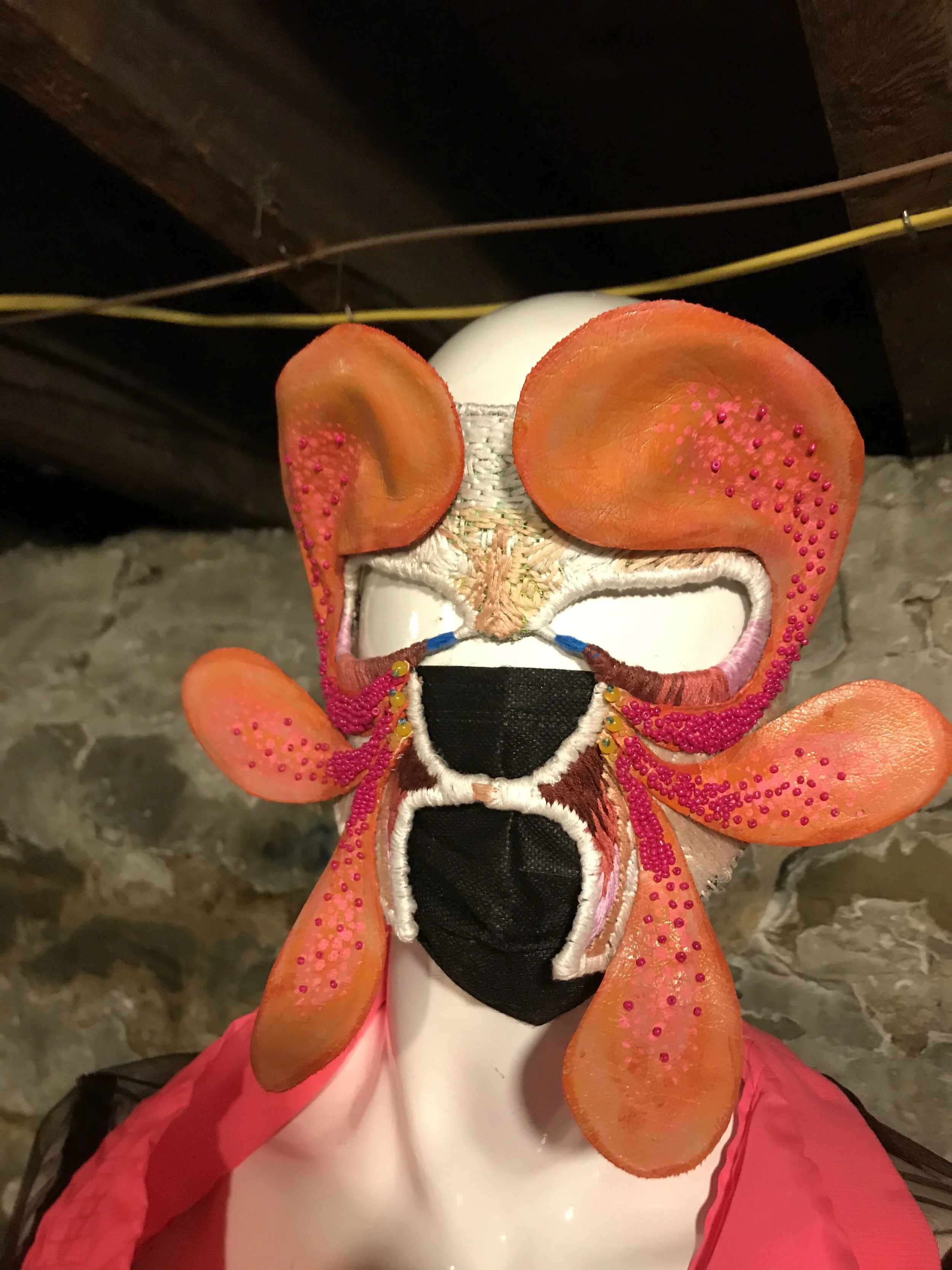 Fashion Under Quarantine Fashion Show- Hand embroidered, beaded, painted mask